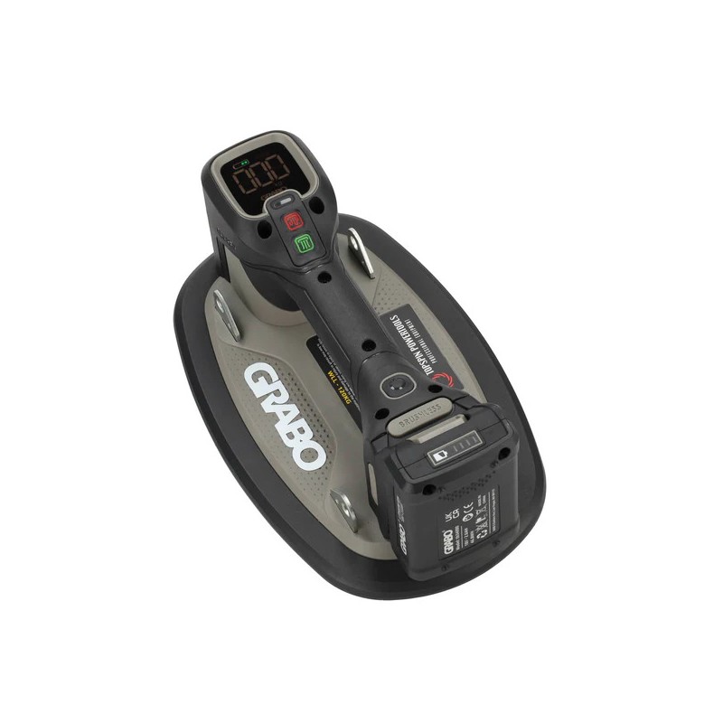 Ventouse GRABO PRO Nouvelle Génération sur batterie avec Manométre Digital. Livré avec 1 batterie, 1 Chargeur de batterie, 1 télécommande, 1 joint mousse, 1 jeu de filtre à air.