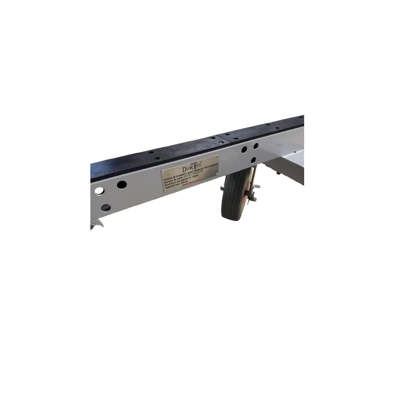 Chariot de Transport/Pose pour plans de travail granits, Marbres, Céramique, Quartzite et Dekton. Il offre une capacité allant jusqu'à 450 kg. La longueur du rail de support fait 1 524 mm avec une ouverture de serrage de 0 à 70 mm à 59 cm du sol afin de limiter l'effort lors de la mise en place des plans.