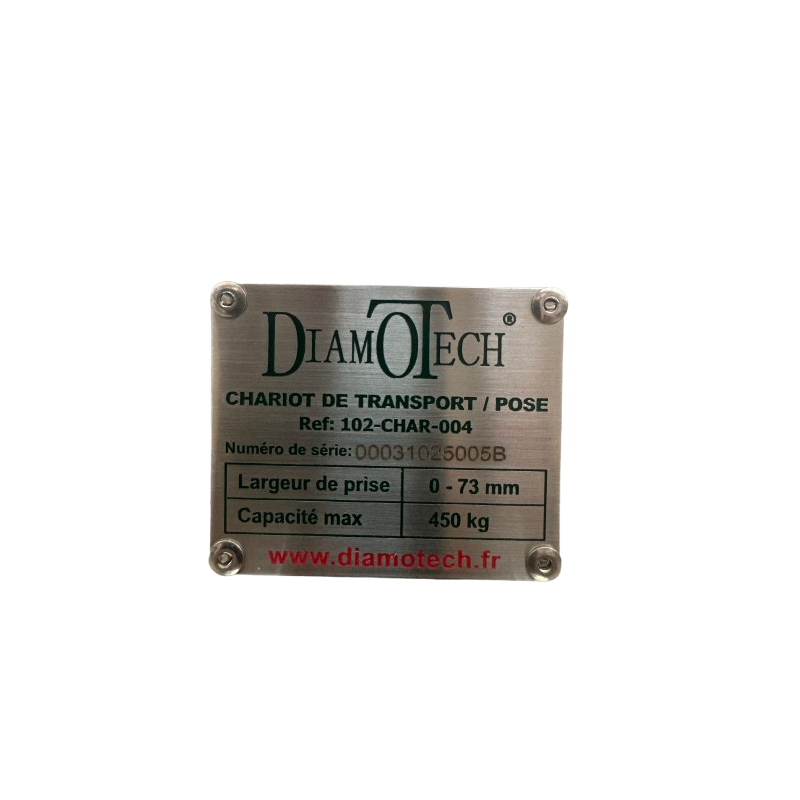 Chariot de Transport/Pose pour plans de travail granits, Marbres, Céramique, Quartzite et Dekton. Il offre une capacité allant jusqu'à 450 kg. Ouverture de serrage de 0 à 70 mm.