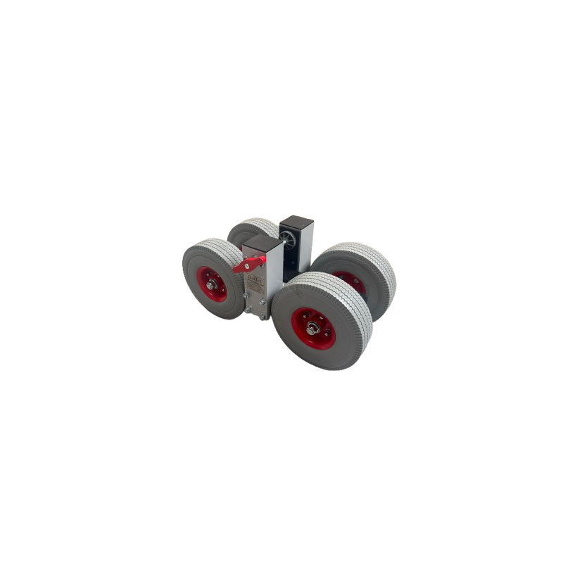 Ce chariot de transport à 4 roues tout terrain est particulièrement conçu pour les accès difficiles, tels que les escaliers, et pour la mise en place de grands éléments.